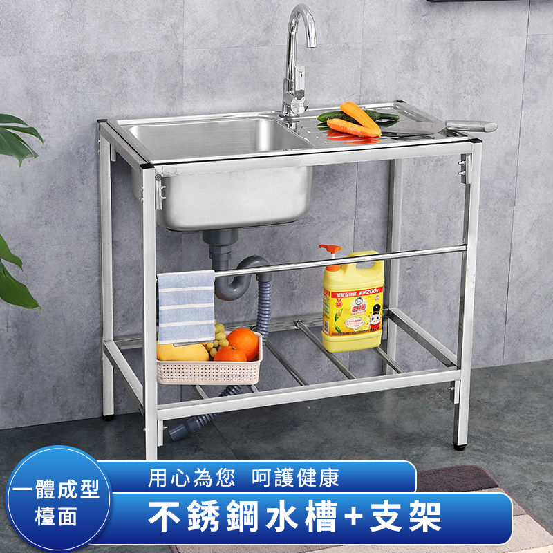 【不鏽鋼單槽水槽】附落地支架|洗碗洗菜一體式操作台|廚房陽台皆適用