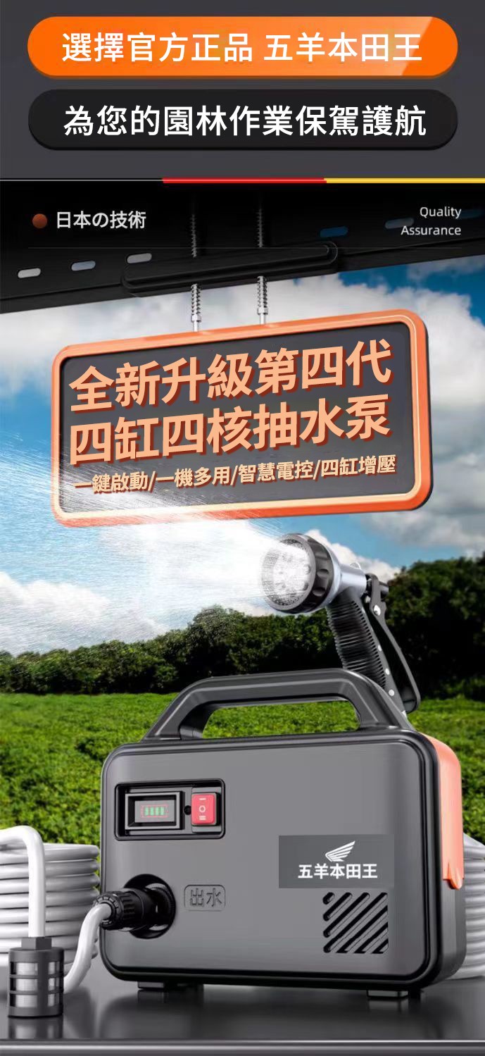 2分鐘前「日本進口」五羊本田王鋰電充電式抽水泵 全新一機升級,澆菜/打藥/洗車/灌溉輕鬆搞定‼️ 十年用不壞 - 【X15節雙電】電量顯示 强续航6小時【螺旋聚压大水流】+10米管