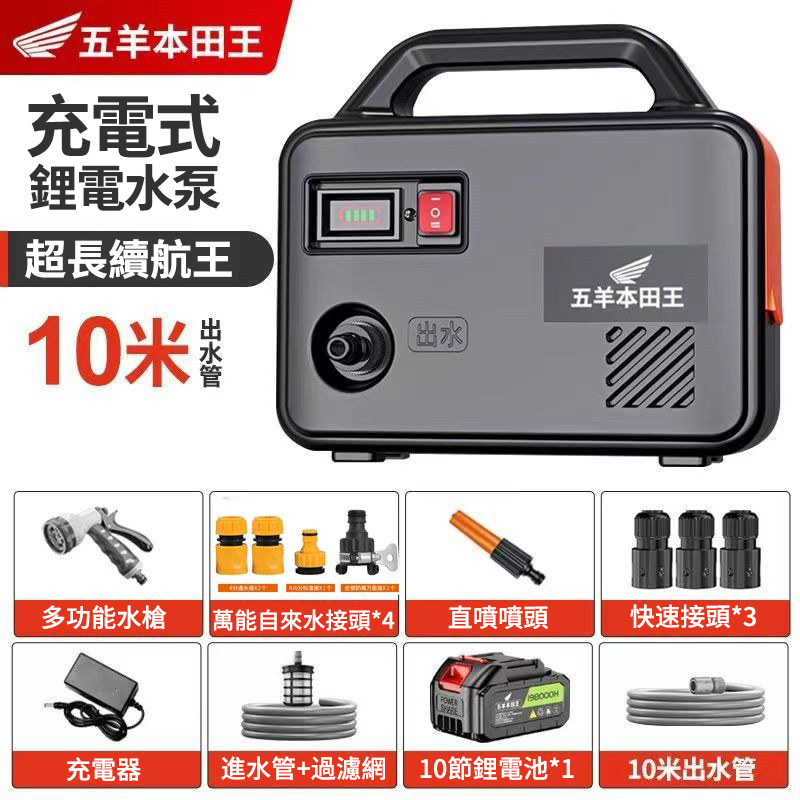 15分鐘前「日本進口」五羊本田王鋰電充電式抽水泵 全新一機升級,澆菜/打藥/洗車/灌溉輕鬆搞定‼️ 十年用不壞 - 【X10節單電】電量顯示 强续航2小時【螺旋聚压大水流】+10米管