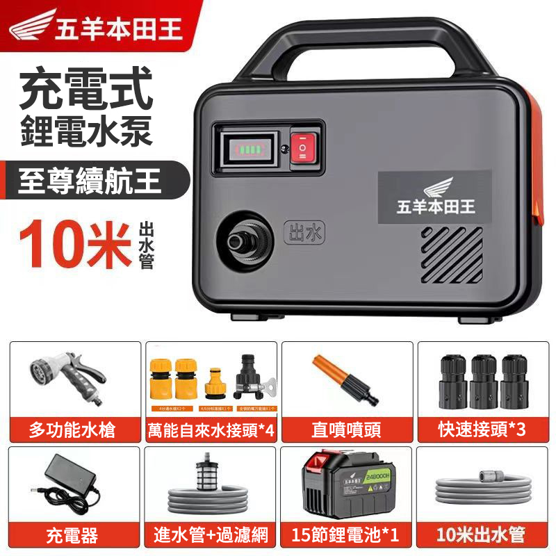 20分鐘前「日本進口」五羊本田王鋰電充電式抽水泵 全新一機升級,澆菜/打藥/洗車/灌溉輕鬆搞定‼️ 十年用不壞 - 【X15節單電】電量顯示 强续航3小時【螺旋聚压大水流】+10米管