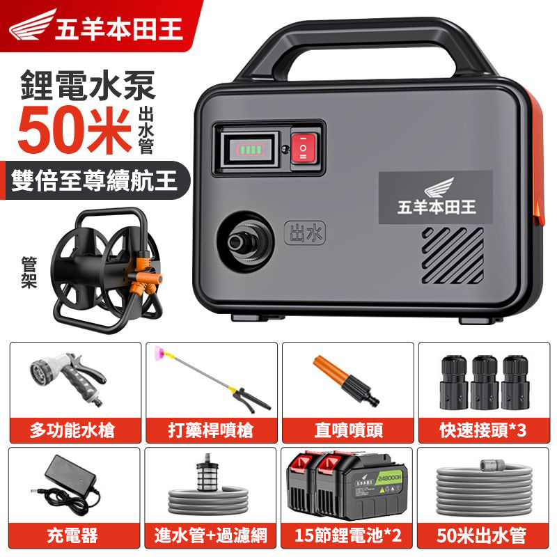 5分鐘前「日本進口」五羊本田王鋰電充電式抽水泵 全新一機升級,澆菜/打藥/洗車/灌溉輕鬆搞定‼️ 十年用不壞 - 【X15節雙電】電量顯示 强续航6小時【螺旋聚压大水流】+50米管+管架