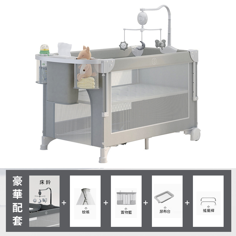 25分鐘前寶寶的專屬空間=床+尿布台+遊戲區,一床三用超實用!【德國寶媽超愛の雙層可折疊嬰兒床】可調高度、可擦拭、免安裝!多功能遊戲嬰兒床一次搞定! - 【豪華款】雙層遊戲拼接升降床+5件組--NT$5180