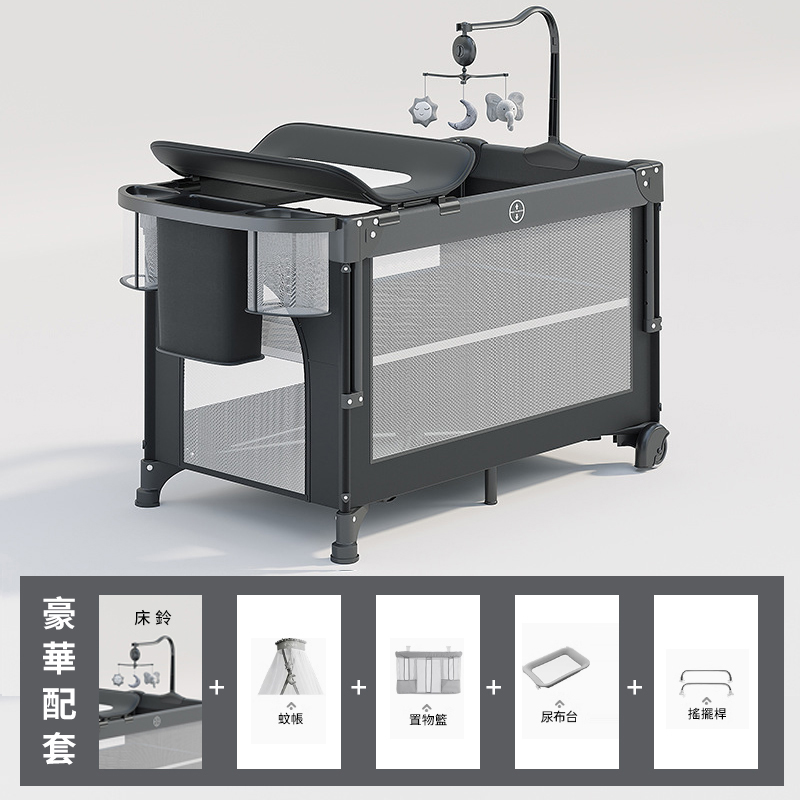 15分鐘前寶寶的專屬空間=床+尿布台+遊戲區,一床三用超實用!【德國寶媽超愛の雙層可折疊嬰兒床】可調高度、可擦拭、免安裝!多功能遊戲嬰兒床一次搞定! - 【豪華款】雙層遊戲拼接升降床+5件組--NT$5180