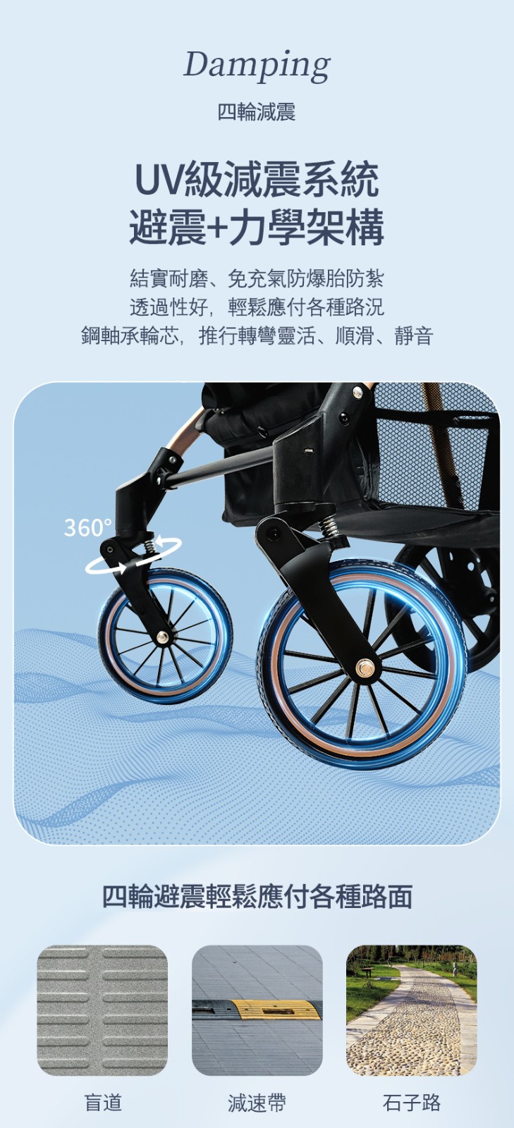 超強減震:顛簸路也能穩穩推