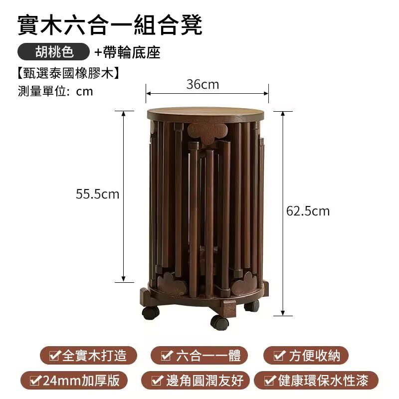 4分鐘前全實木可疊放凳 升級6入組|多功能茶几椅子 二合一設計 MIT台灣製造|茶几+椅子一次搞定 - 【6合1】全實木加厚-可疊放【兩大+四小】底托+萬向輪---NT$6260