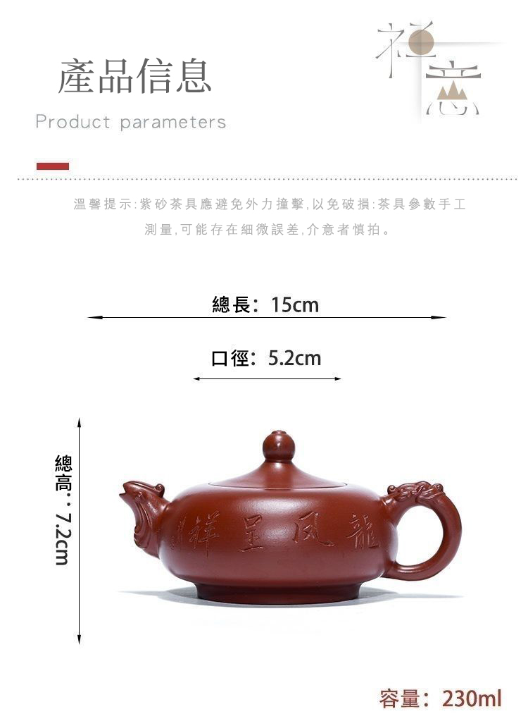 4分鐘前正宗宜興紫砂 ❘ 珍藏原礦大紅袍顧景舟純手工龍鳳呈祥紫砂壺230ml - 一泡而紅 / 龍鳳呈祥 / 安全包裝