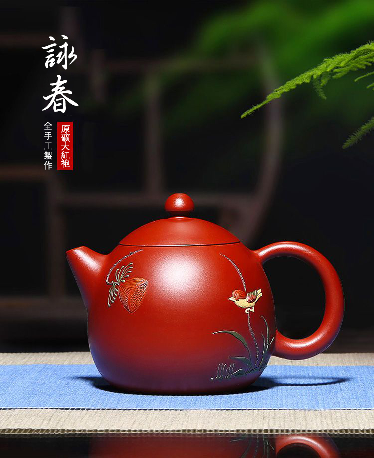 4分鐘前【經典器型 • 別出心裁】正宗宜興原礦大紅袍紫砂壺☞吳敏純手工匠心製作詠春龍蛋一壺四杯 - 大紅袍花香龍單壺200cc