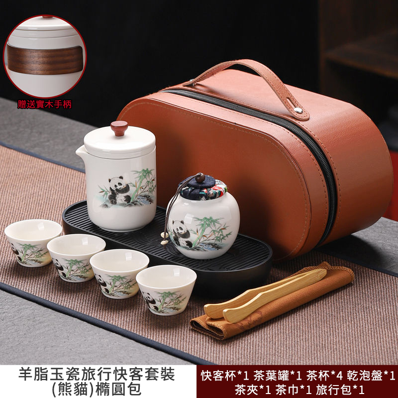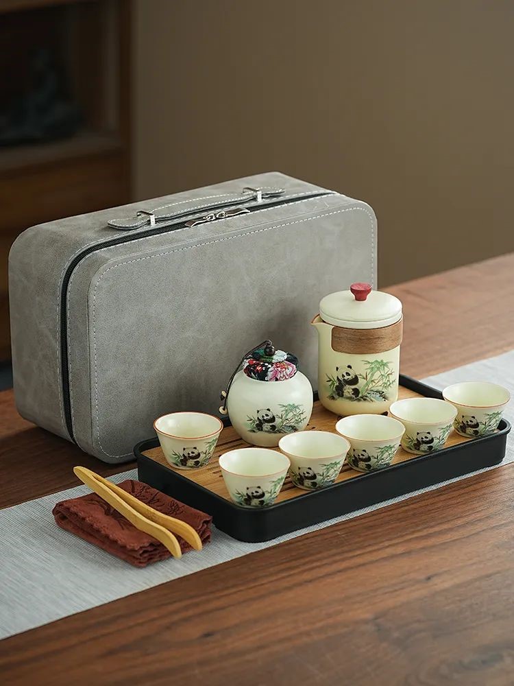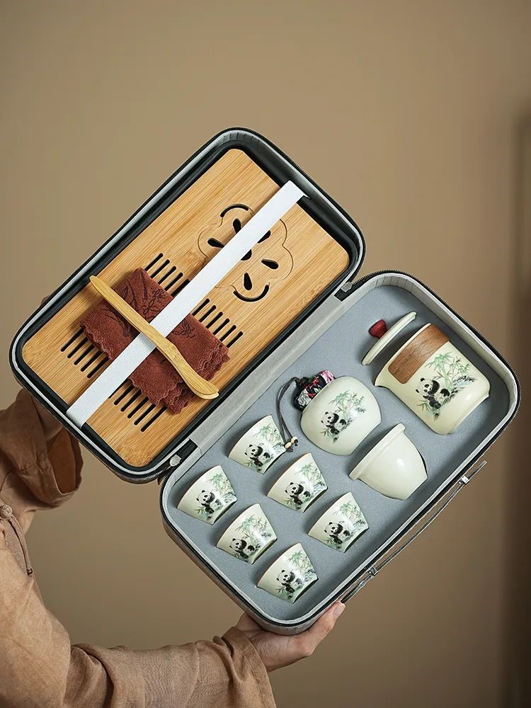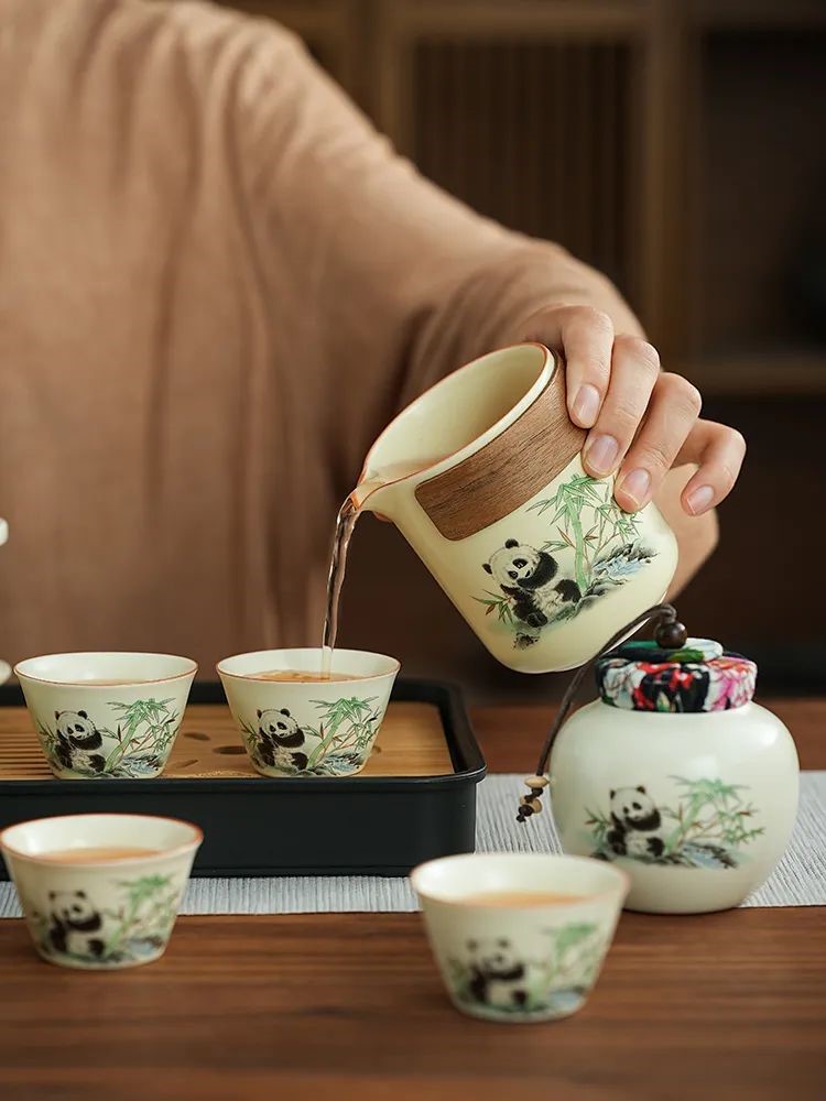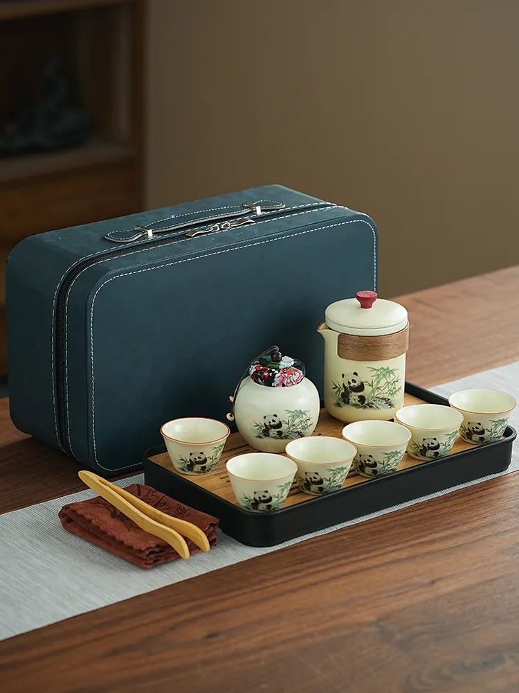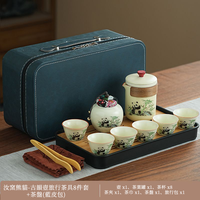 見慣了常見的天青色,今天給推薦大家與眾不同的:“熊貓·黃汝旅行茶具套裝”