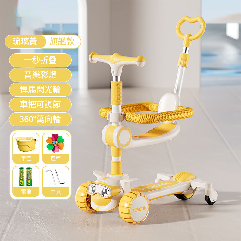 7分鐘前【降價熱賣】新款兒童多功能滑板車,1到14歲都能玩!!陪伴寶寶成長 快樂整個童年! - 琉璃黃【送車筐+風車】