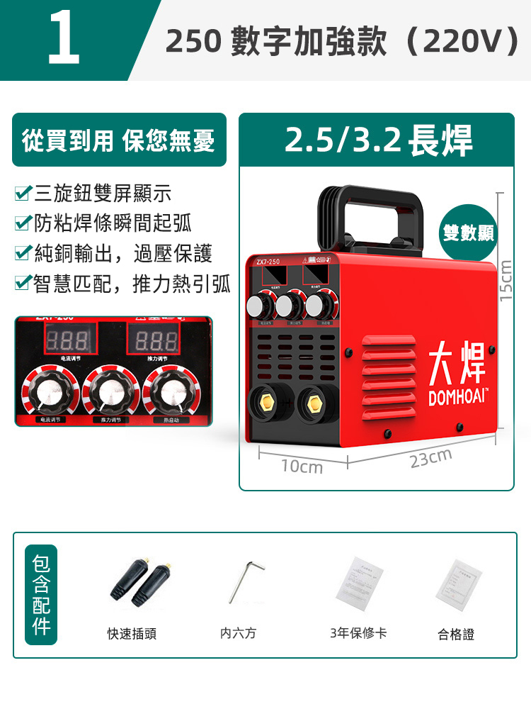 半小時前業內焊機領軍品牌【德國DOMHOAI】全新二代數字化電焊機,瞬間起弧,長焊4.0焊條 - 【250-220V】數字加強款+基礎套餐