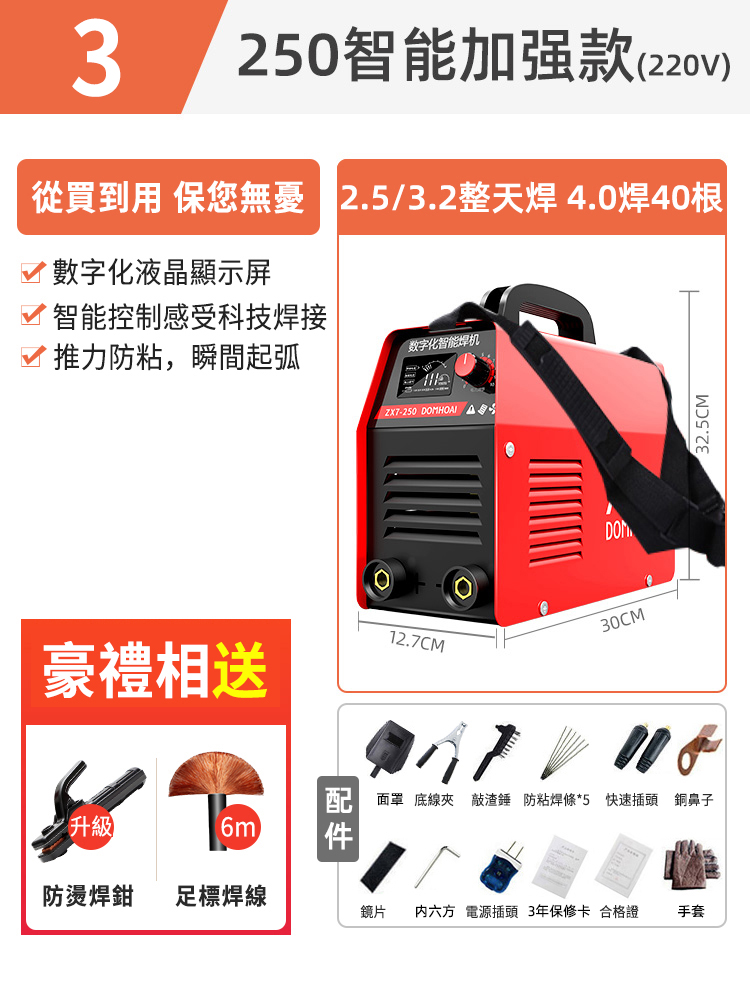 4分鐘前業內焊機領軍品牌【德國DOMHOAI】全新二代數字化電焊機,瞬間起弧,長焊4.0焊條 - 【250-220V】智能加强款+防燙焊鉗+6米焊線+大禮包