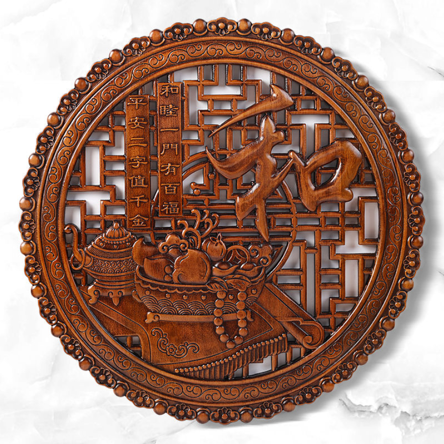 20分鐘前年到!福到! [東陽木雕] 傳承千年木上巧思——天然香樟木雕刻掛件 久放升值 家中旺!年年順! - 經典款-圓形28cm---NT$1480
