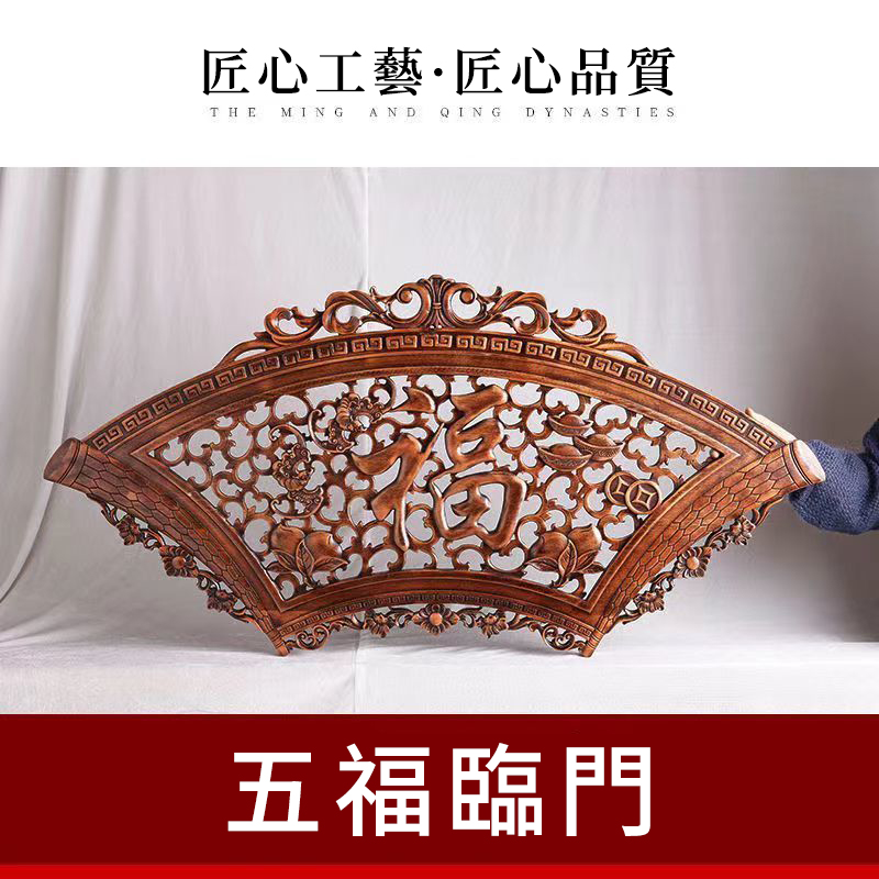 5分鐘前年到!福到! [東陽木雕] 傳承千年木上巧思——天然香樟木雕刻掛件 久放升值 家中旺!年年順! - 典藏款-扇形80*40cm---NT$2480