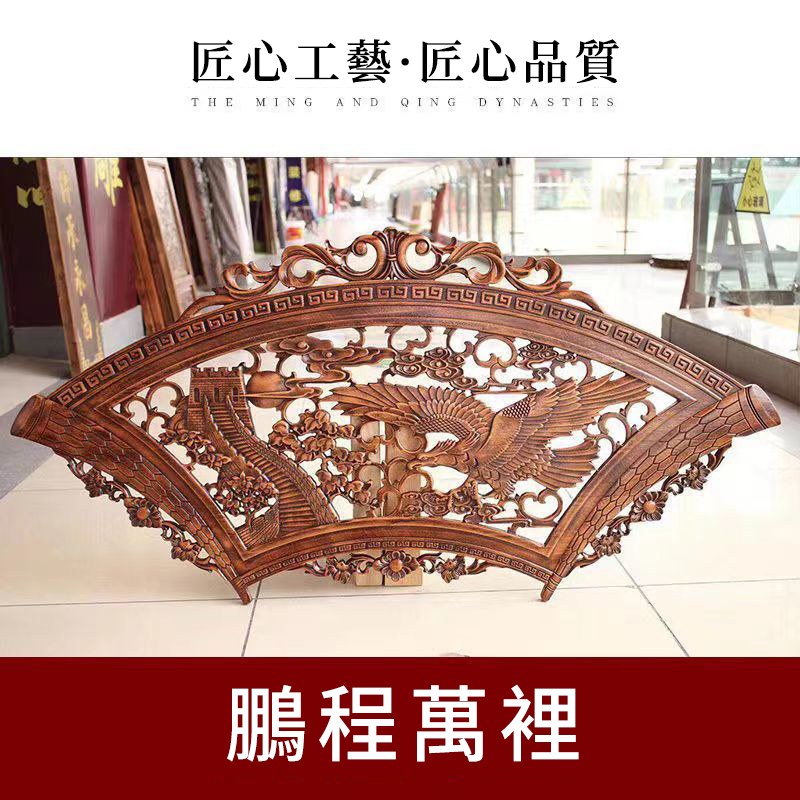 20分鐘前年到!福到! [東陽木雕] 傳承千年木上巧思——天然香樟木雕刻掛件 久放升值 家中旺!年年順! - 典藏款-扇形118*58cm---NT$4880