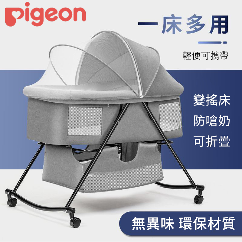 【日本熱銷母嬰品牌 Pigeon】便攜式折疊嬰兒床 讓寶寶一覺到天亮 寶寶安心睡,新手爸媽更放心