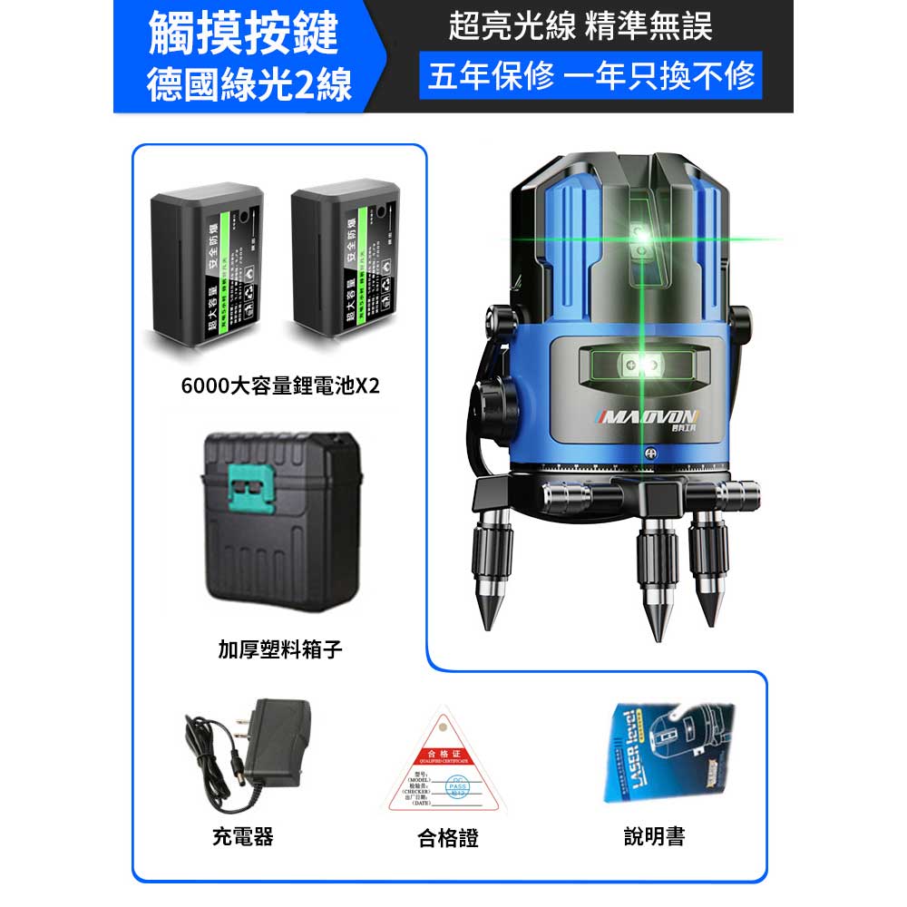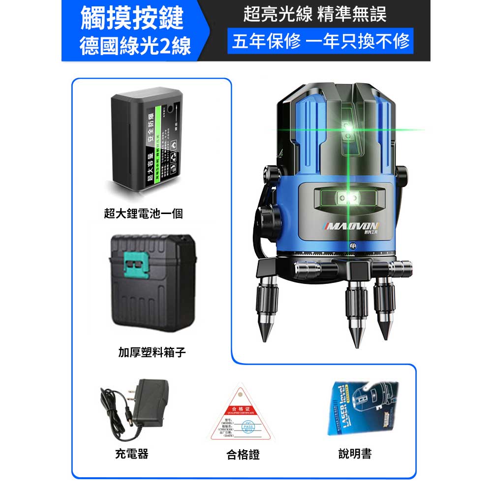 2分鐘前熱銷破萬件!戶外清晰可見【德國MAOVON】歐司朗綠光2/3/5線鐳射儀 - 基礎款【5線】雙電+加厚塑箱 NT$2550