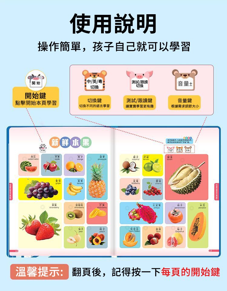 4分鐘前【二年質保 I 防水耐斯】會說話的早期教育有聲書0-12歲中英粵三語兒童早期教育啟蒙學習手指點讀書(送充電線) - 常規款【啟蒙早教】15主題800內容